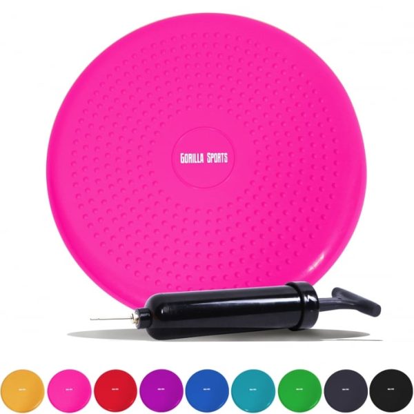 Balanskudde Balansdyna Piggar 33cm Balanskudde, även kallad balansdyna, med en diameter på 33cm i nio olika färger med medföljande pump och en yta med gummi piggar. Träna upp din balans och stärk fotled, knäled och höftled genom att göra diverse övningar på kudden så som att stå på den med ett ben, ha två och göra knäböj på, göra utfall med en fot på osv. Även att sitta på bollen på jobbet för att aktivera bålen ytterligare är vanligt förekommande och du kan säkert komma på flera alternativ på egen hand. Övrig information; Finns i olika färger; Svart, turkos, röd, rosa, lila, grön, gul, grå, blå Maxsimal belastning; 220kg Ingår i leveransen; Luftpump Diameter; 33cm Material; PVC, halkfritt