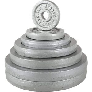 Viktskivor IRON Silver 31mm 0,5kg-30kg Högkvalitativa viktskivor som finns i nio olika vikter mellan 0,5-30kg och är gjorda av massivt gjutjärn. Viktskivorna har en håldiameter på 31mm och passar skivstänger med diamater på 30mm. Viktskivorna har även en smart kant/list för att underlätta att greppa tag, bära och plocka av och på vikterna. Säljs en och en. Dimension och vikt; 0,5kg – Diameter; 9,7cm – Bredd; 1,4cm 1,25kg – Diameter; 12,3cm – Bredd; 2cm 2,5kg – Diameter; 16cm – Bredd; 2,3cm 5kg – Diameter; 20,9cm – Bredd; 2,8cm 10kg – Diameter; 28,5cm – Bredd; 3cm 15kg – Diameter; 32,6cm – Bredd; 3,4cm 20kg – Diameter; 34,5cm – Bredd; 4cm 25kg – Diameter; 35,5cm – Bredd; 4,35cm 30kg – Diameter; 38,4cm – Bredd; 4,6cm Övrig information; Viktskivorna håldiameter; 31mm Material; Pulverlackerat gjutjärn Färg; Silvergrå Vikter; 0,5-30kg