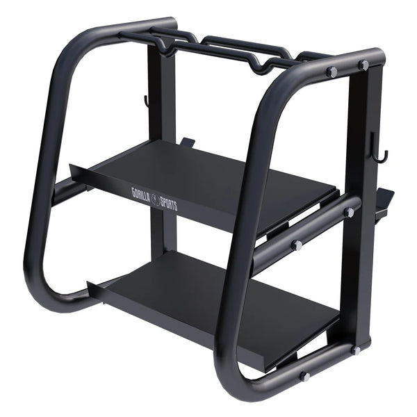 Viktställ MULTI Det här kompakta hantelstället passar perfekt till hemmagymmet. Det finns plats för både hantlar, kettlebells och små viktskivor. Högst upp kan du placera två hantlar, och på de…