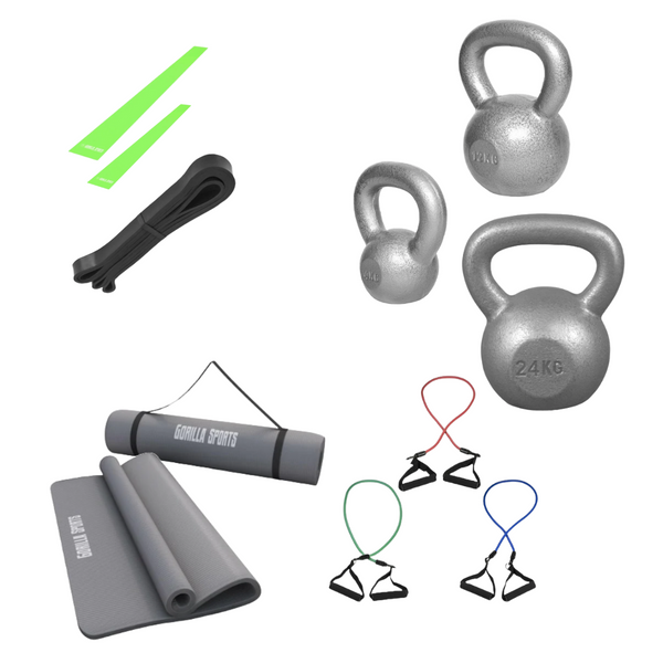 Utomhusträning Paketet Med det här paketet får du allt du behöver för att träna styrka, rörlighet och flexibilitet utomhus! Många av våra kunder söker produkter som kan användas utomhus, därför har vi sammanställt det här paketet med effektiv styrketräningsutrustning som enkelt kan tas med ut utan att du behöver oroa dig för att utrustningen ska gå sönder. De långa gummibanden ger extra motstånd för övningar som chins, dips, bänkpress och marklyft, medan kettlebells är perfekta för funktionell styrketräning och ger både stabilitet och kontroll. Den breda och mjuka träningsmattan är perfekt för stretching och rörlighet, och tillsammans med latexbanden och de justerbara gummibanden kan du variera träningen på många olika sätt, både hemma, på gymmet eller utomhus. Paketet innehåller; Gummiband Lång 208cm svart 6,8-29,5kg – Långt och starkt gummiband som kan användas för ökat motstånd vid styrkeövningar eller som hjälp vid kroppsviktsövningar. Kettlebell Massive IRON 4/12/24kg – Robust gjutjärnskettlebell med plan botten och tydlig viktmarkering, perfekt för funktionell styrketräning. Träningsmatta XL Deluxe 190x100cm grå – Extra bred och mjuk matta som ger komfort vid stretching, rörlighetsträning och golvövningar. Latexband 120/200cm grön – Flexibelt latexband med lösa ändar som kan användas för styrka, stretch och rörlighetsträning. Gummiband Justerbara Tre färger – Tre justerbara motstånd i ett och samma band med praktiska handtag och förvaringspåse, perfekt för både rehab, uppvärmning och intensiv träning. Gummiband Lång 208cm svart 6,8-29,5kg Motstånd; 6,8-29,5kg beroende på hur mycket bandet sträcks Material; Gummi Längd; 208cm Kettlebell Massive IRON 4/12/24kg Dimensioner; 4kg (9x16cm, handtag 3cm), 12kg (15x21cm, handtag 3,5cm), 24kg Viktmarkering på framsidan (19x27cm, handtag 4cm) Plan botten för stabilitet Material; Gjutjärn Färg; Silver/Grå Träningsmatta XL Deluxe 190x100cm Grå Material; Ftalatfritt, hudvänligt skum av nitrilgummi och PVC Mått; 190x100x1,5cm Bärsele inkluderad Vikt; 2,2kg Latexband 120/200cm Grön Längd; 120cm eller 200cm Material; Latex Tjocklek; 0,45mm Motstånd; Medium Bredd; 15cm Gummiband Justerbara Tre färger Färg och motstånd; Blå (Lätt 1,4-2,5kg), Röd (Medium 2,2-3,4kg), Grön (Tung 2,8-5,3kg) Gummibandets längd; 117cm, diameter 1,2cm Förvaringspåse och två handtag medföljer Grepplängd handtag; 12cm Greppets diameter; 2,5 cm Det här paketet passar perfekt för dig som gillar att träna utomhus, eller för dig som vill kunna variera din träning och enkelt ta med utrustningen dit du vill träna.