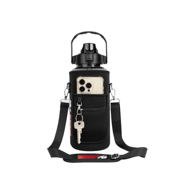 Gorilla Wears Water Bottle With Sleeve 2 L, black, Gorilla Wear gör det enkelt att hålla din tillhörigheter samlade på gymmet. Vattenflaskan har sugrör och har en praktiskt hylsa med två fickor, klickspänne för dina nycklar/tag och en axelrem med vaddering vid axeln.- Behållare på 2 liter- Medföljer hylsa, axelrem, sugrör- Läckagesäker- Tydlig nivåmarkering