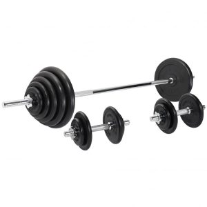 Skivstångspaket 25/26mm Totalt 60kg Den här skivtången är idealisk för ditt hemmagym med de plastbelagda viktskivorna som är snälla mot ditt golv. Skivstången är...